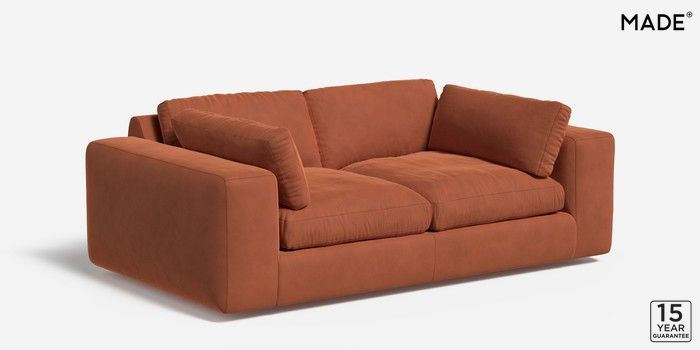 6.12.1 Alec by Made 3 Seater Small Sofa Matt Velvet Easy Clean Burnt Orange Glide | Made Click here to use our website with more accessibility support, for example screen readers