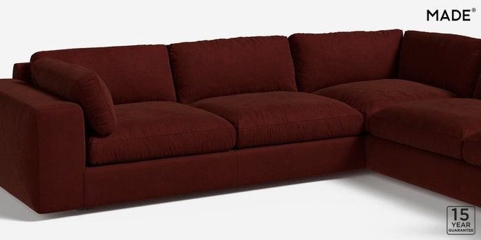 6.12.1 Alec by Made Medium Corner Sofa - Universal Matt Velvet Easy Clean Rust Red Glide | Made Click here to use our website with more accessibility support, for example screen readers
