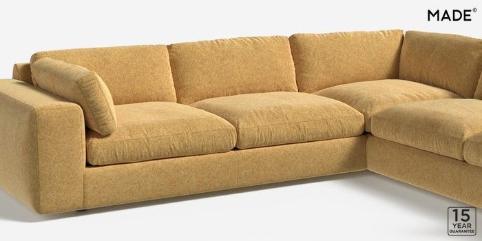 6.12.1 Alec by Made Medium Corner Sofa - Universal Soft Chenille Easy Clean Yellow Ochre Glide | Made Click here to use our website with more accessibility support, for example screen readers