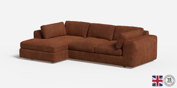 6.12.1 Alec by Made Medium Sofa Chaise - Left Hand Matt Corduroy Nutmeg Orange Glide | Made Click here to use our website with more accessibility support, for example screen readers