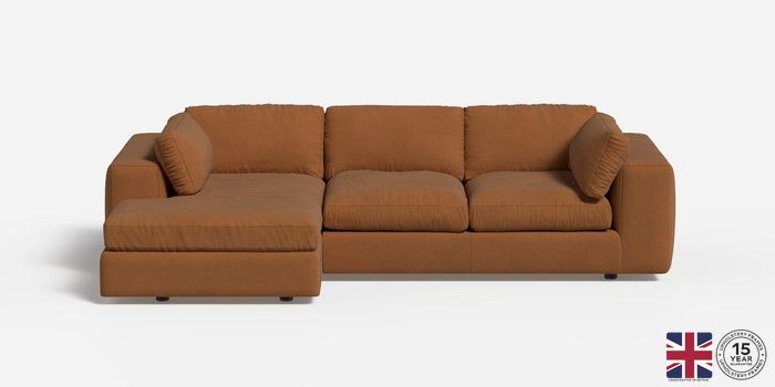 6.12.1 Alec by Made Medium Sofa Chaise - Left Hand Matt Velvet Easy Clean Fawn Truffle Natural Glide | Made Click here to use our website with more accessibility support, for example screen readers