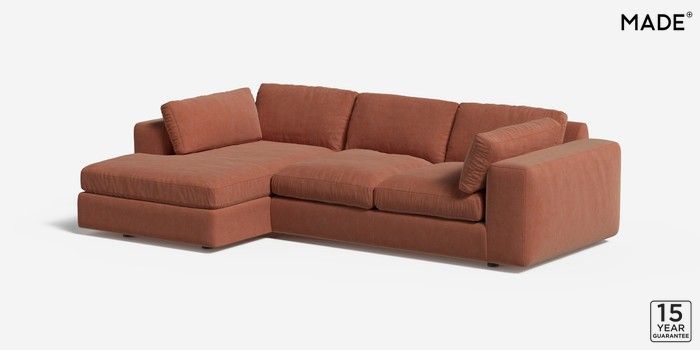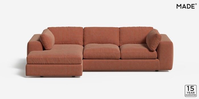 6.12.1 Alec by Made Medium Sofa Chaise - Left Hand Soft Chenille Easy Clean Paprika Orange Glide | Made Click here to use our website with more accessibility support, for example screen readers