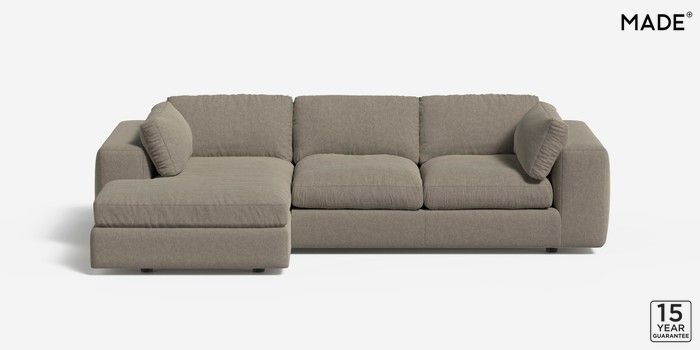 6.12.1 Alec by Made Medium Sofa Chaise - Left Hand Soft Chenille Easy Clean Pebble Grey Glide | Made Click here to use our website with more accessibility support, for example screen readers