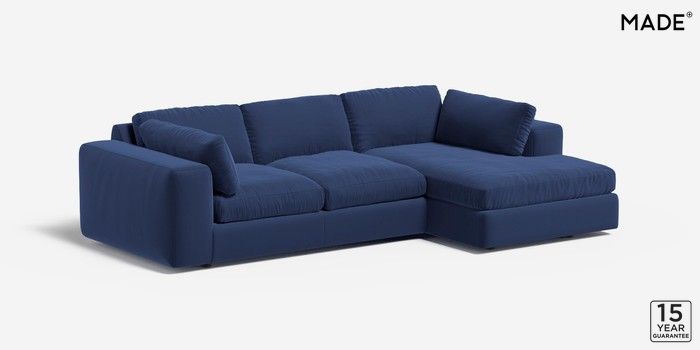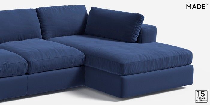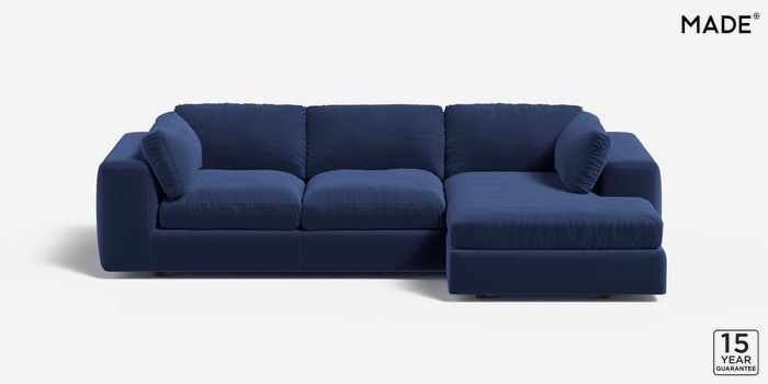 6.12.1 Alec by Made Medium Sofa Chaise - Right Hand Matt Velvet Easy Clean Navy Blue Glide | Made Click here to use our website with more accessibility support, for example screen readers