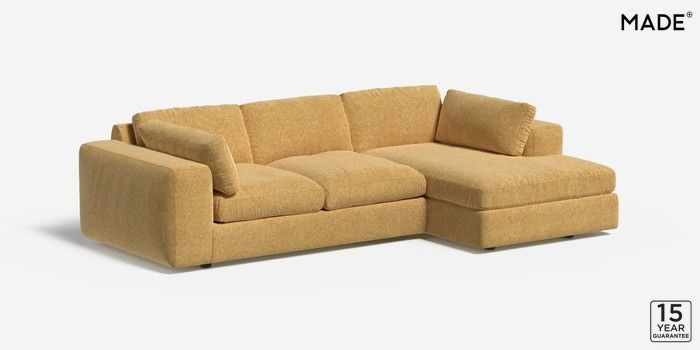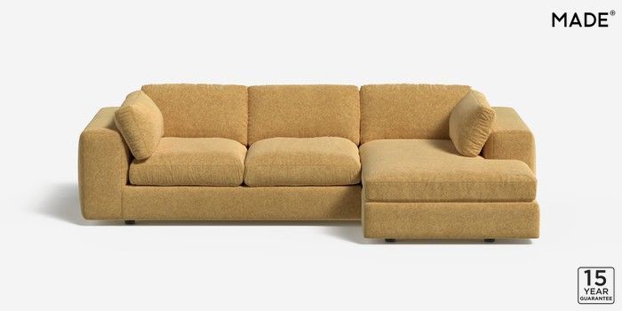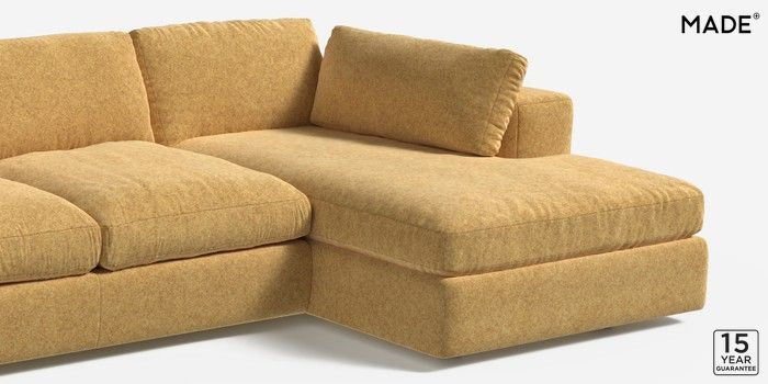 6.12.1 Alec by Made Medium Sofa Chaise - Right Hand Soft Chenille Easy Clean Yellow Ochre Glide | Made Click here to use our website with more accessibility support, for example screen readers