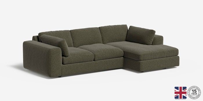 6.12.1 Alec by Made Medium Sofa Chaise - Right Hand Soft Touch Boucle Forest Green Glide | Made Click here to use our website with more accessibility support, for example screen readers