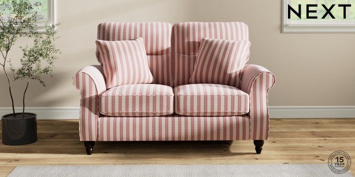 7.2.10 Ashford Highback 2 Seater Small Sofa Bold Chenille Stripe Dark Pink Low Turned - Dark | Made Click here to use our website with more accessibility support, for example screen readers