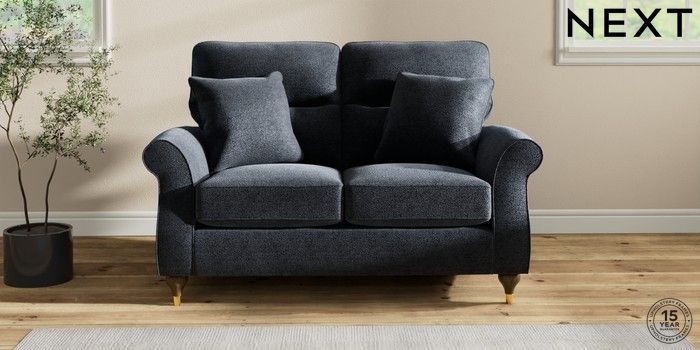 7.2.10 Ashford Highback 2 Seater Small Sofa Boucle Chenille Dark Slate Blue Modern Turned Metal Cap - Mid | Made Click here to use our website with more accessibility support, for example screen readers