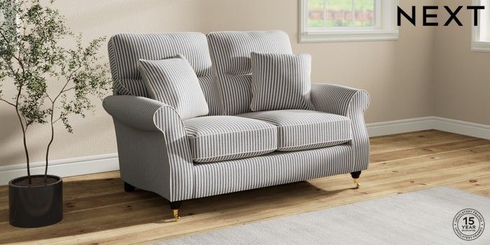 7.2.10 Ashford Highback 2 Seater Small Sofa Chenille Stripe Slate Blue Castor - Dark | Made Click here to use our website with more accessibility support, for example screen readers