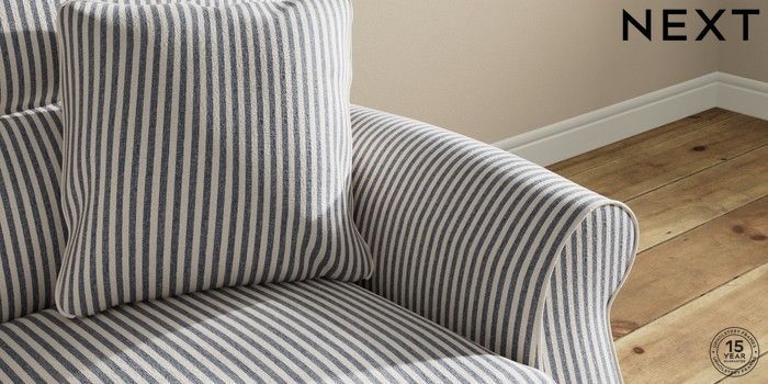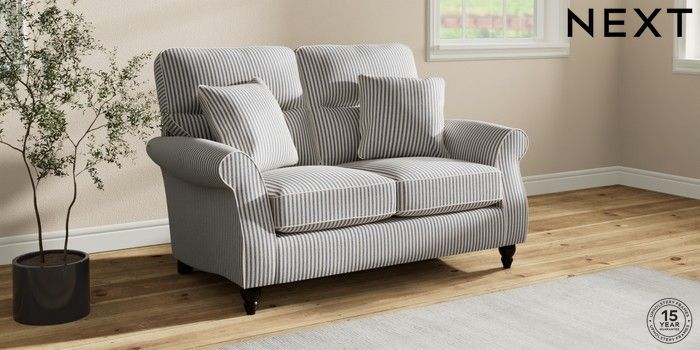 7.2.10 Ashford Highback 2 Seater Small Sofa Chenille Stripe Slate Blue Low Turned - Dark | Made Click here to use our website with more accessibility support, for example screen readers