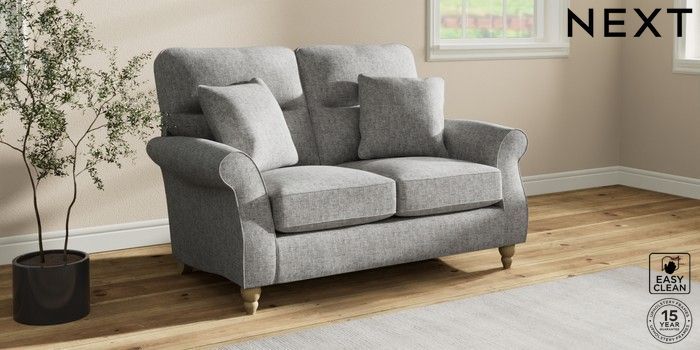 7.2.10 Ashford Highback 2 Seater Small Sofa Chunky Boucle Easy Clean Light Grey Low Turned - Light | Made Click here to use our website with more accessibility support, for example screen readers