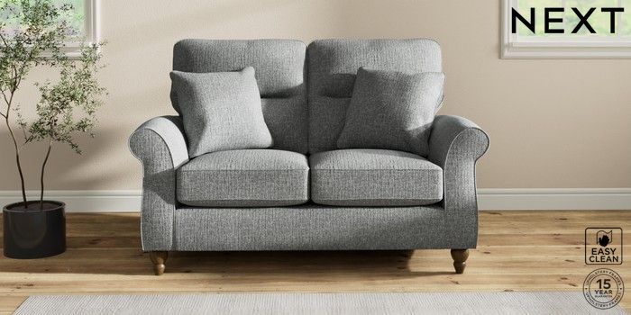 7.2.10 Ashford Highback 2 Seater Small Sofa Chunky Boucle Easy Clean Mid Grey Low Turned - Mid | Made Click here to use our website with more accessibility support, for example screen readers