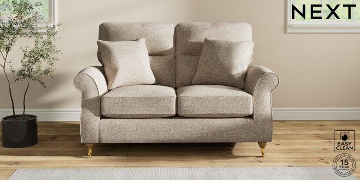 7.2.10 Ashford Highback 2 Seater Small Sofa Chunky Boucle Easy Clean Mid Natural Castor - Light | Made Click here to use our website with more accessibility support, for example screen readers