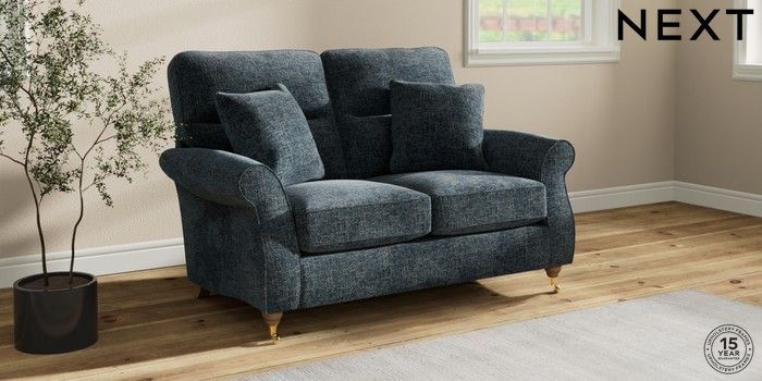 7.2.10 Ashford Highback 2 Seater Small Sofa Chunky Chenille Dark Navy Blue Castor - Light | Made Click here to use our website with more accessibility support, for example screen readers
