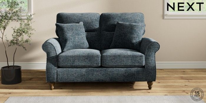 7.2.10 Ashford Highback 2 Seater Small Sofa Chunky Chenille Dark Navy Blue Low Turned - Mid | Made Click here to use our website with more accessibility support, for example screen readers