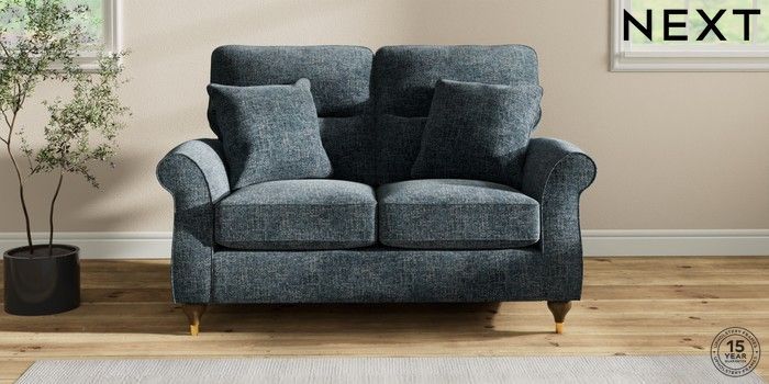 7.2.10 Ashford Highback 2 Seater Small Sofa Chunky Chenille Dark Navy Blue Modern Turned Metal Cap - Mid | Made Click here to use our website with more accessibility support, for example screen readers