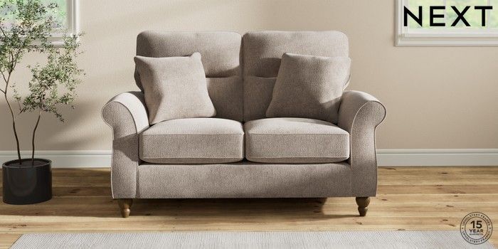 7.2.10 Ashford Highback 2 Seater Small Sofa Chunky Chenille Light Dove Low Turned - Mid | Made Click here to use our website with more accessibility support, for example screen readers