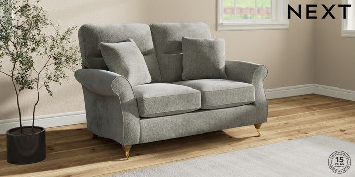 7.2.10 Ashford Highback 2 Seater Small Sofa Chunky Chenille Light Grey Castor - Light | Made Click here to use our website with more accessibility support, for example screen readers