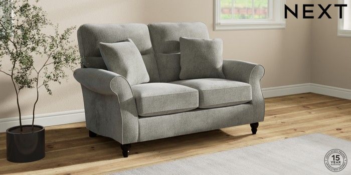 7.2.10 Ashford Highback 2 Seater Small Sofa Chunky Chenille Light Grey Low Turned - Dark | Made Click here to use our website with more accessibility support, for example screen readers