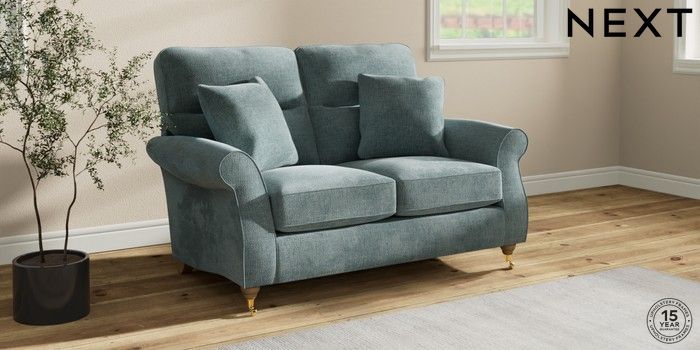 7.2.10 Ashford Highback 2 Seater Small Sofa Chunky Chenille Light Teal Green Castor - Light | Made Click here to use our website with more accessibility support, for example screen readers