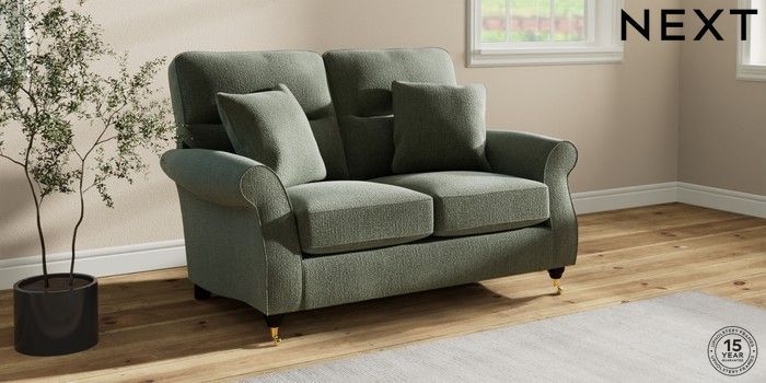 7.2.10 Ashford Highback 2 Seater Small Sofa Chunky Texture Mid Forest Green Castor - Dark | Made Click here to use our website with more accessibility support, for example screen readers