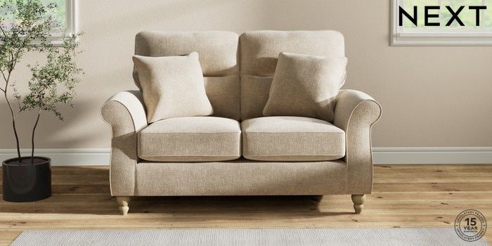 7.2.10 Ashford Highback 2 Seater Small Sofa Chunky Weave Cream Low Turned - Light | Made Click here to use our website with more accessibility support, for example screen readers