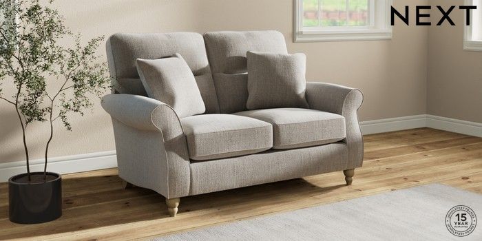 7.2.10 Ashford Highback 2 Seater Small Sofa Chunky Weave Dove Grey Low Turned - Light | Made Click here to use our website with more accessibility support, for example screen readers