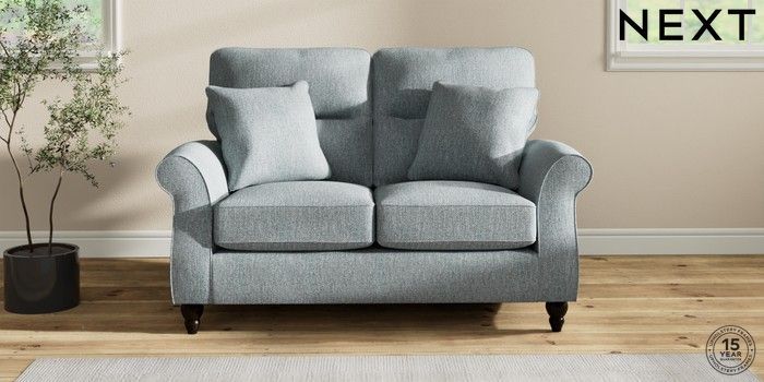 7.2.10 Ashford Highback 2 Seater Small Sofa Chunky Weave Mid Blue Low Turned - Dark | Made Click here to use our website with more accessibility support, for example screen readers