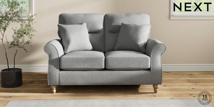 7.2.10 Ashford Highback 2 Seater Small Sofa Chunky Weave Mid Grey Low Turned - Light | Made Click here to use our website with more accessibility support, for example screen readers