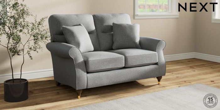 7.2.10 Ashford Highback 2 Seater Small Sofa Chunky Weave Mid Grey Modern Turned Metal Cap - Mid | Made Click here to use our website with more accessibility support, for example screen readers