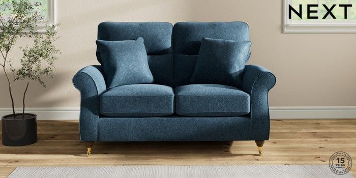 7.2.10 Ashford Highback 2 Seater Small Sofa Cotswold Chenille Dark Blue Castor - Mid | Made Click here to use our website with more accessibility support, for example screen readers