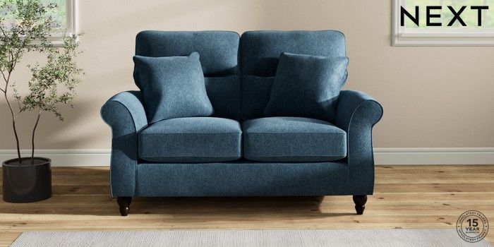 7.2.10 Ashford Highback 2 Seater Small Sofa Cotswold Chenille Dark Blue Low Turned - Dark | Made Click here to use our website with more accessibility support, for example screen readers