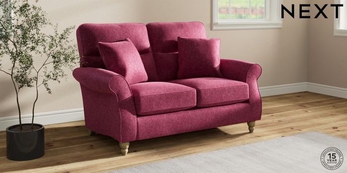 7.2.10 Ashford Highback 2 Seater Small Sofa Cotswold Chenille Dark Raspberry Pink Low Turned - Light | Made Click here to use our website with more accessibility support, for example screen readers