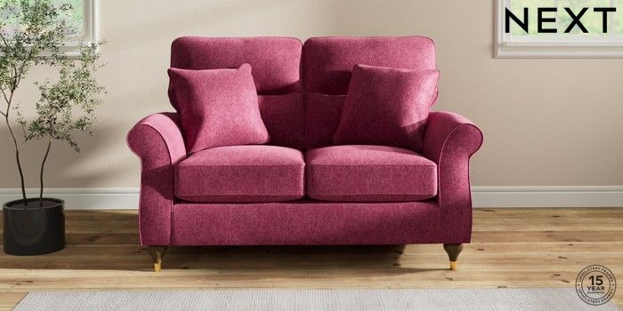 7.2.10 Ashford Highback 2 Seater Small Sofa Cotswold Chenille Dark Raspberry Pink Modern Turned Metal Cap - Mid | Made Click here to use our website with more accessibility support, for example screen readers