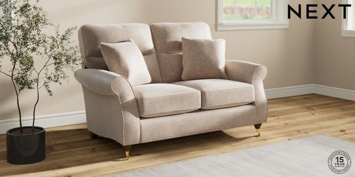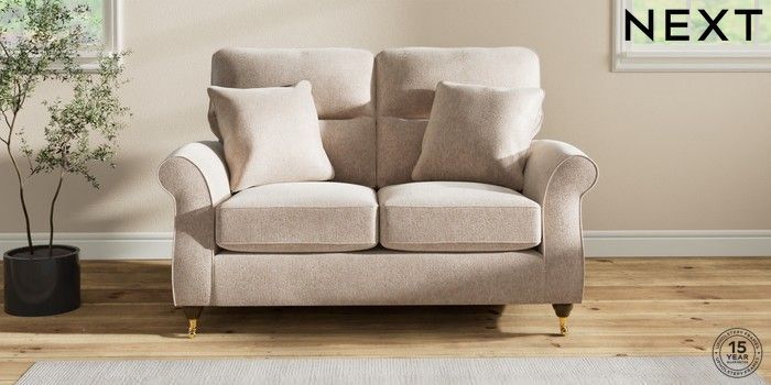 7.2.10 Ashford Highback 2 Seater Small Sofa Cotswold Chenille Light Natural Castor - Mid | Made Click here to use our website with more accessibility support, for example screen readers