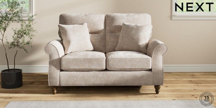 7.2.10 Ashford Highback 2 Seater Small Sofa Distressed Velour Mid Natural Low Turned - Mid | Made Click here to use our website with more accessibility support, for example screen readers