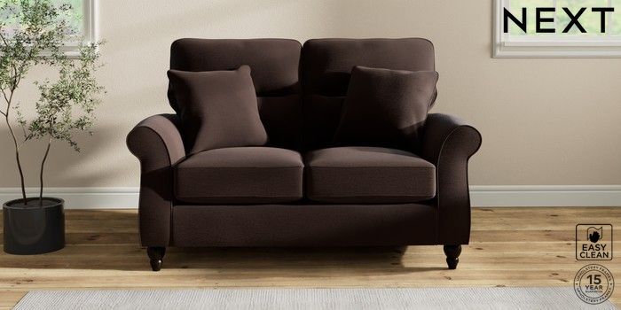7.2.10 Ashford Highback 2 Seater Small Sofa Fine Chenille Easy Clean Chocolate Brown Low Turned - Dark | Made Click here to use our website with more accessibility support, for example screen readers