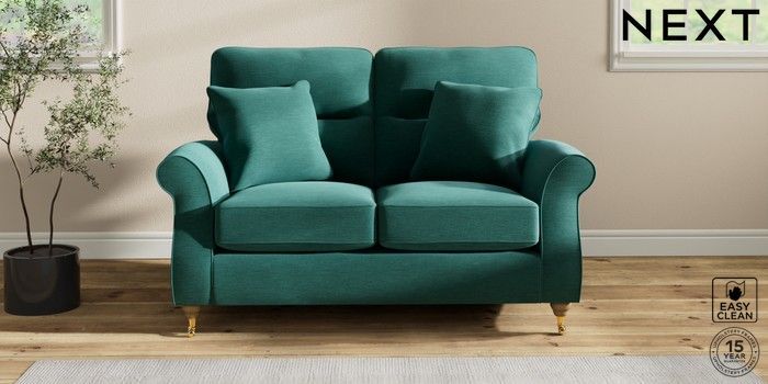7.2.10 Ashford Highback 2 Seater Small Sofa Fine Chenille Easy Clean Dark Juniper Green Castor - Light | Made Click here to use our website with more accessibility support, for example screen readers