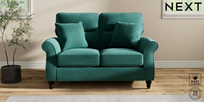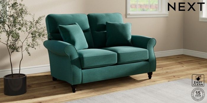 7.2.10 Ashford Highback 2 Seater Small Sofa Fine Chenille Easy Clean Dark Juniper Green Low Turned - Dark | Made Click here to use our website with more accessibility support, for example screen readers