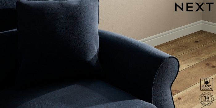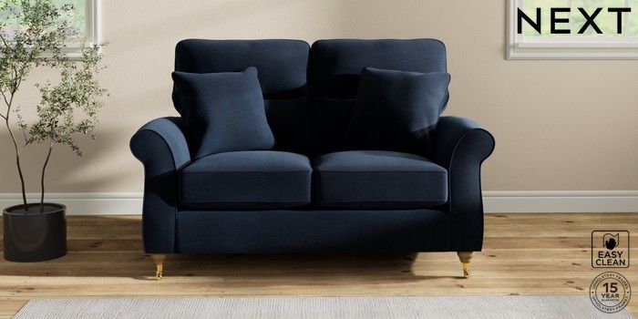 7.2.10 Ashford Highback 2 Seater Small Sofa Fine Chenille Easy Clean Dark Navy Blue Castor - Light | Made Click here to use our website with more accessibility support, for example screen readers