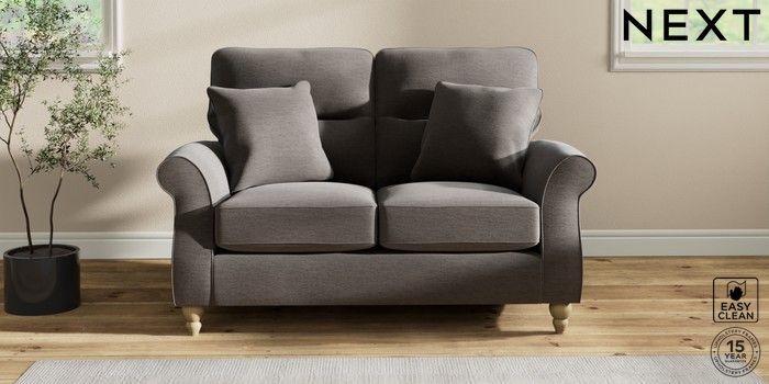 7.2.10 Ashford Highback 2 Seater Small Sofa Fine Chenille Easy Clean Dark Smoke Grey Low Turned - Light | Made Click here to use our website with more accessibility support, for example screen readers