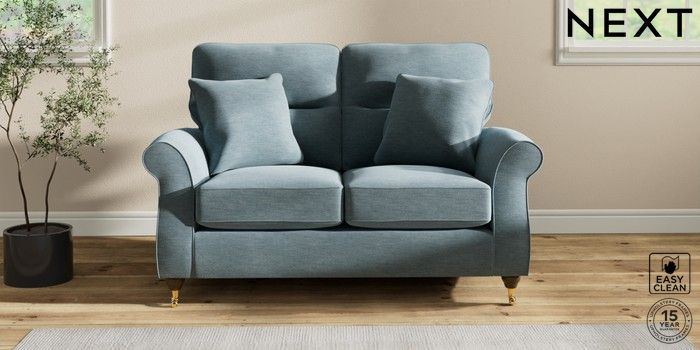 7.2.10 Ashford Highback 2 Seater Small Sofa Fine Chenille Easy Clean Mid Blue Castor - Mid | Made Click here to use our website with more accessibility support, for example screen readers