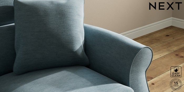 7.2.10 Ashford Highback 2 Seater Small Sofa Fine Chenille Easy Clean Mid Blue Modern Turned Metal Cap - Mid | Made Click here to use our website with more accessibility support, for example screen readers