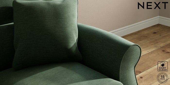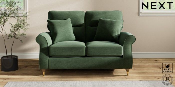7.2.10 Ashford Highback 2 Seater Small Sofa Fine Chenille Easy Clean Mid Khaki Green Castor - Light | Made Click here to use our website with more accessibility support, for example screen readers