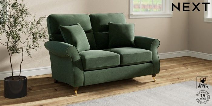 7.2.10 Ashford Highback 2 Seater Small Sofa Fine Chenille Easy Clean Mid Khaki Green Castor - Mid | Made Click here to use our website with more accessibility support, for example screen readers