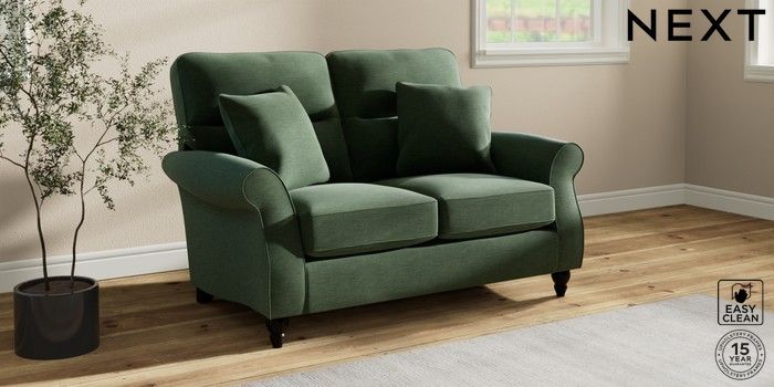 7.2.10 Ashford Highback 2 Seater Small Sofa Fine Chenille Easy Clean Mid Khaki Green Low Turned - Dark | Made Click here to use our website with more accessibility support, for example screen readers