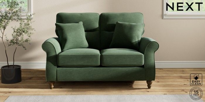 7.2.10 Ashford Highback 2 Seater Small Sofa Fine Chenille Easy Clean Mid Khaki Green Low Turned - Mid | Made Click here to use our website with more accessibility support, for example screen readers