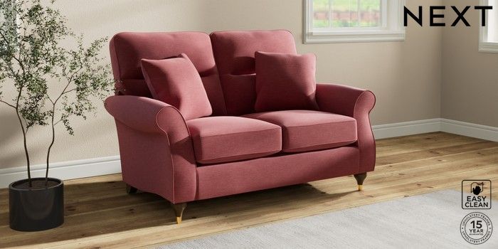 7.2.10 Ashford Highback 2 Seater Small Sofa Fine Chenille Easy Clean Mid Pink Modern Turned Metal Cap - Mid | Made Click here to use our website with more accessibility support, for example screen readers