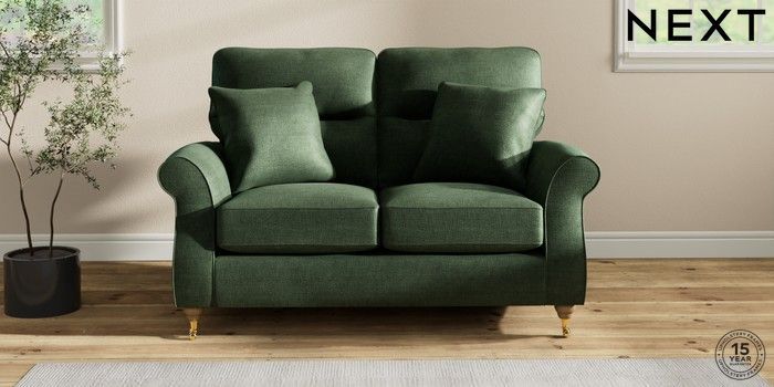 7.2.10 Ashford Highback 2 Seater Small Sofa Luxe Chenille Dark Green Castor - Light | Made Click here to use our website with more accessibility support, for example screen readers