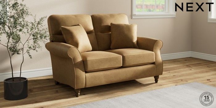 7.2.10 Ashford Highback 2 Seater Small Sofa Luxe Chenille Honey Yellow Low Turned - Mid | Made Click here to use our website with more accessibility support, for example screen readers